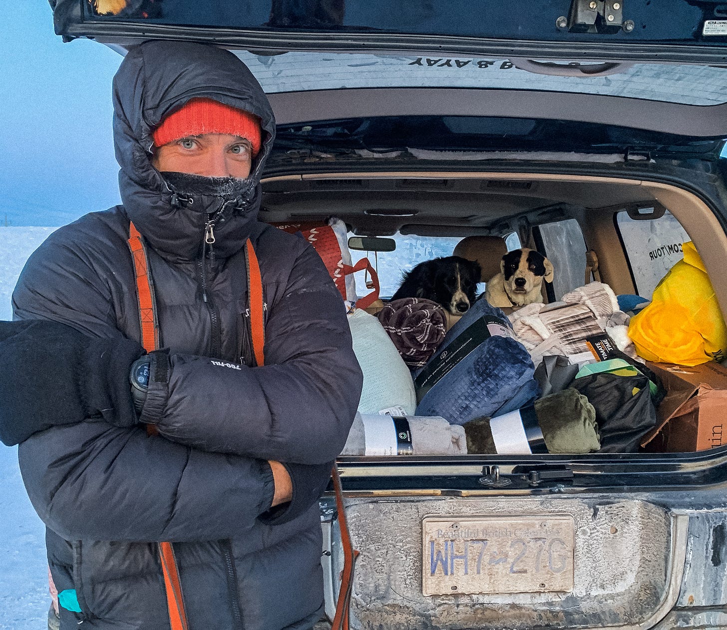 What if I drive across Canada with the dogs collecting blankets for shelters?